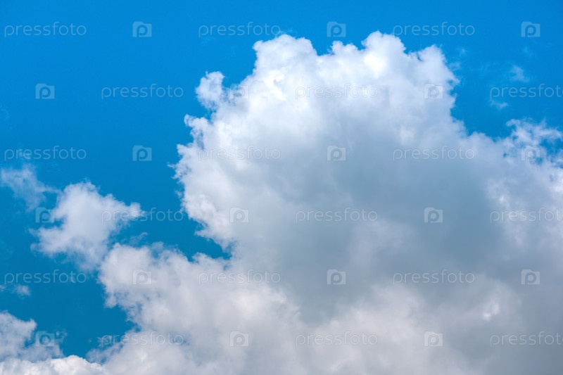 Фон - голубое небо с кучевыми облаками