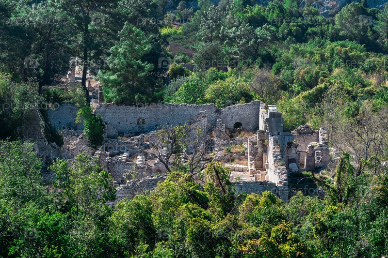Вид с воздуха на долину с руинами древнего города Олимп в Турции