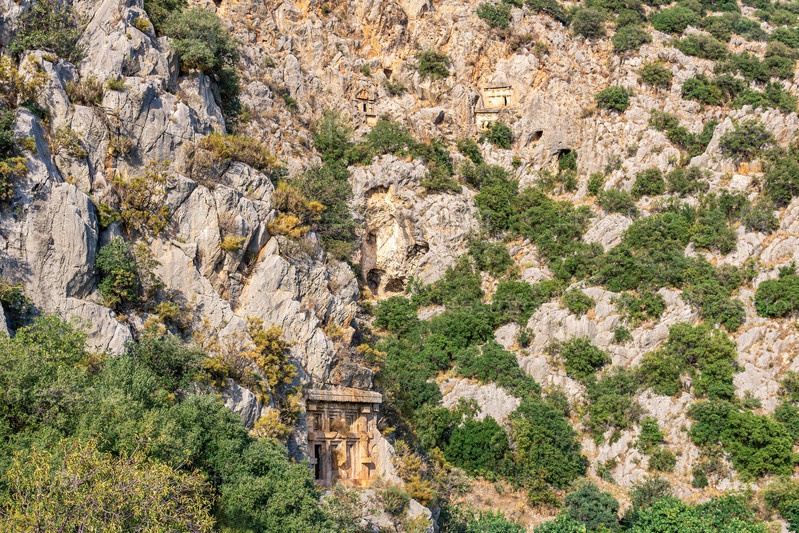 Скальный некрополь с каменными гробницами в Мирах Ликийских (Демре, Турция)