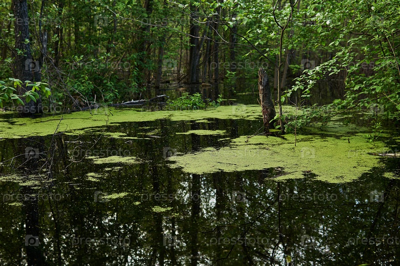 Лесистая старица с ряской, затопленная во время весеннего половодья