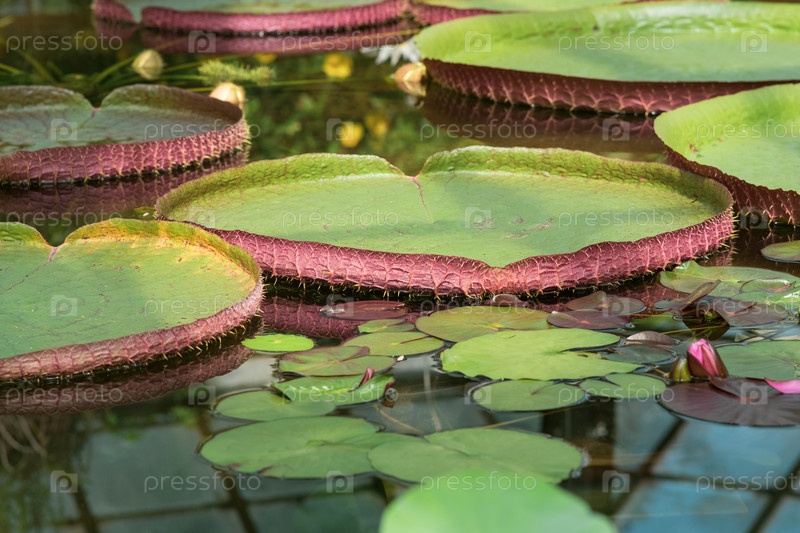 Плавающие листья гигантской кувшинки Виктория амазонская