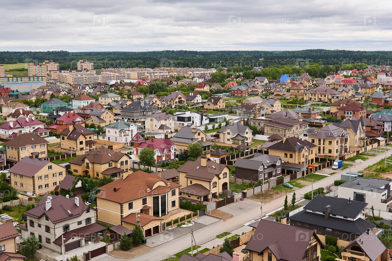 Частные дома в пригородном районе, вид сверху