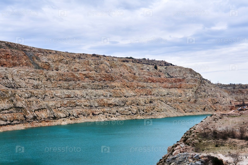 Часть старого известнякового карьера с голубым озером внизу