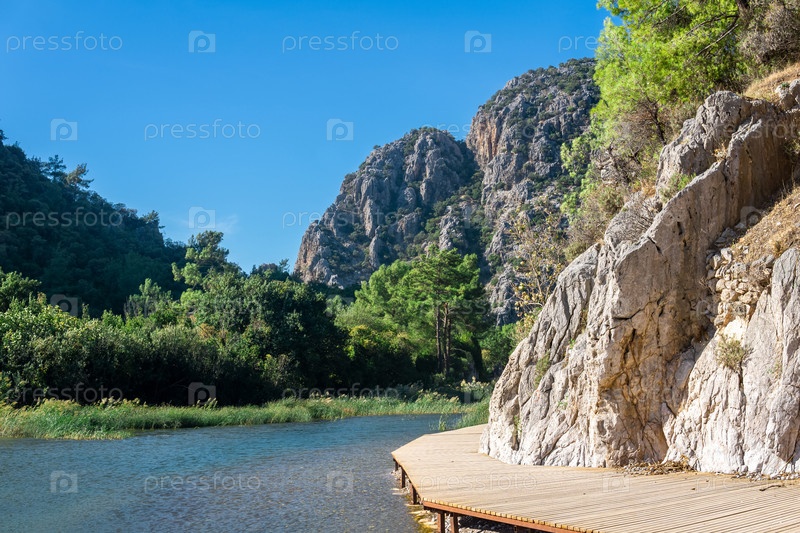 Экологическая тропа вдоль скалы на берегу реки в тропической горной местности