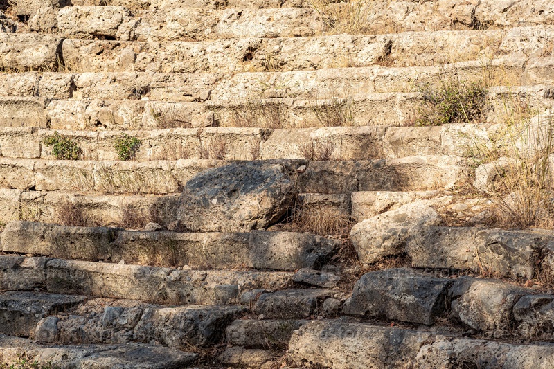 Ветхие ступеньки-скамейки на трибунах старинного стадиона или театра