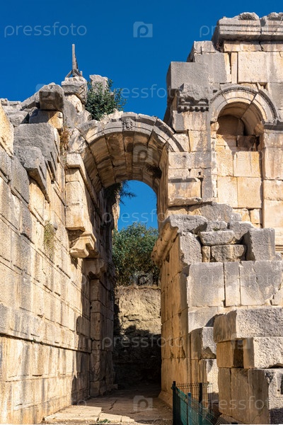 Руины древнего театра в Мире (Демре, Турция), сзади слой земли, отложившийся с течением времени
