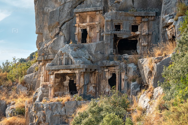 Древние гробницы и склепы, высеченные в скалах руин Миры