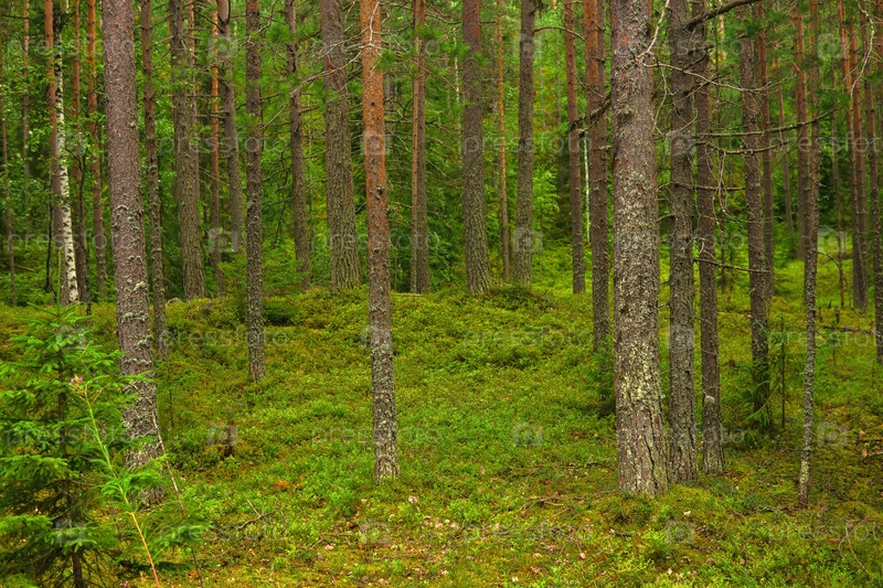Природный ландшафт, сосновый бореальный лес с моховым подлеском, хвойная тайга