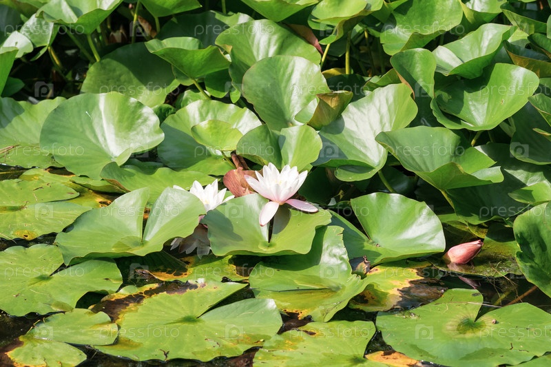 Красивый цветок лотоса среди листьев в естественной среде обитания
