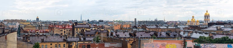 Панорамный вид сверху на крыши города в историческом центре Санкт-Петербурга