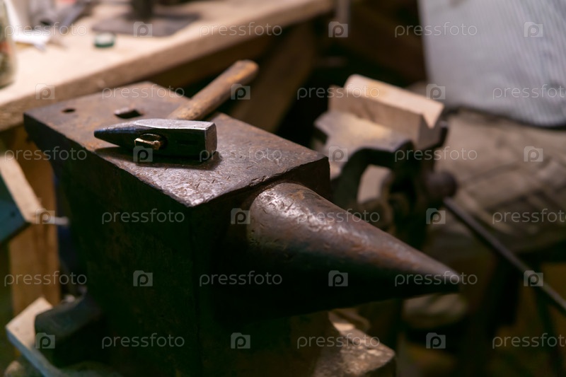 Молот лежит на наковальне в мастерской