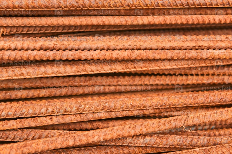 Фон - ржавая арматура, сложенная в кучу крупным планом