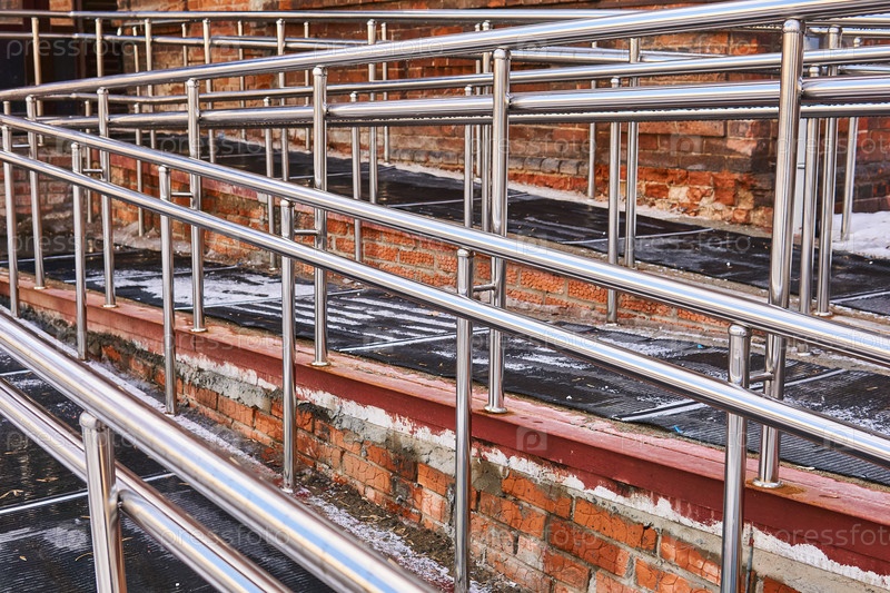 Современный пандус для инвалидов, пристроенный к старому зданию