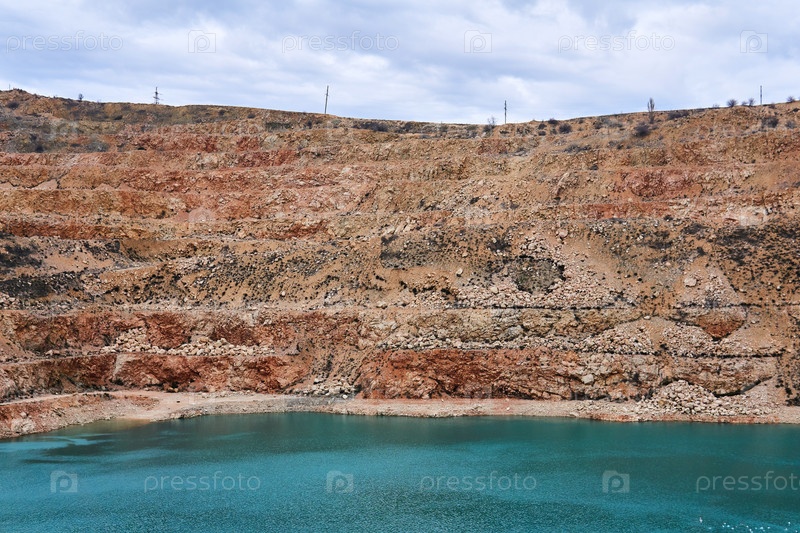 Старый известняковый карьер с голубым озером внизу