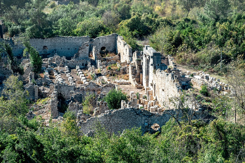 Вид с воздуха на долину с руинами древнего города Олимп в Турции