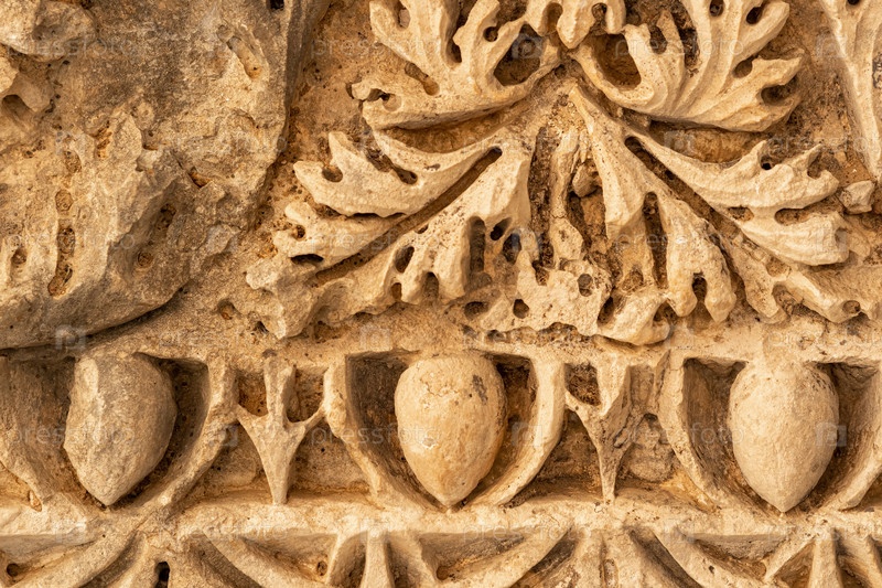 Древний выветриваемый рельеф на руинах здания в древнем городе Мира, Турция