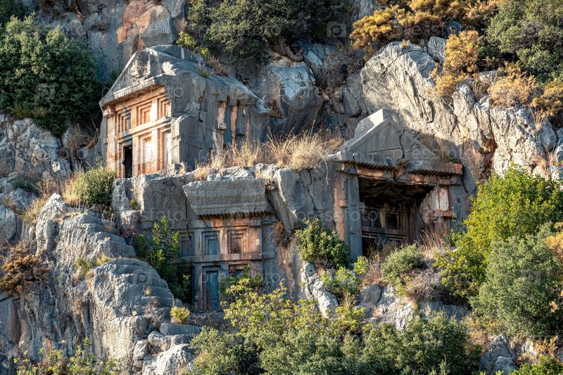 Древние гробницы и склепы, высеченные в скалах руин Миры