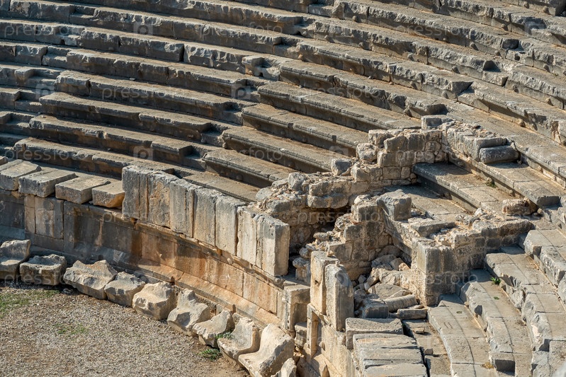Вид на арену и трибуны античного амфитеатра в руинах Миры (Демре, Турция)