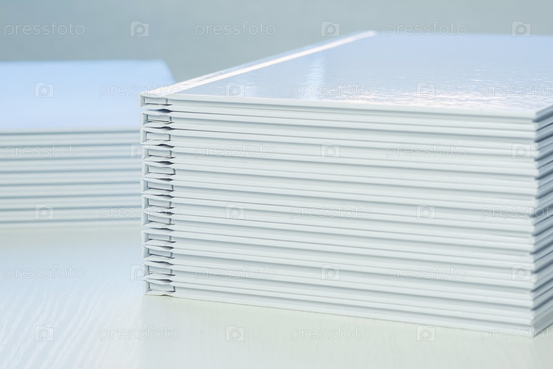 Обложки фотокниг с чистыми пустыми белыми обложками, крупным планом, частичным размытием