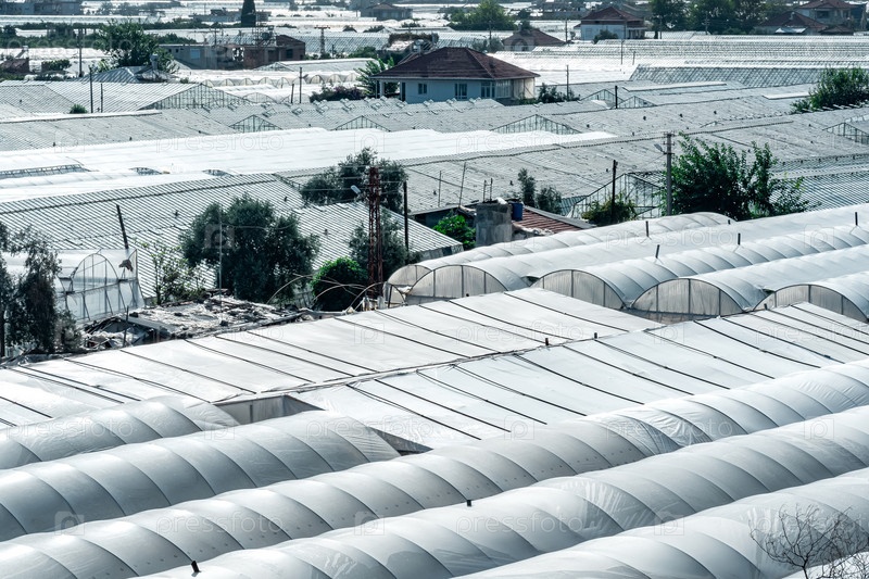 Вид на город Демре на юге Турции с сельскохозяйственными теплицами