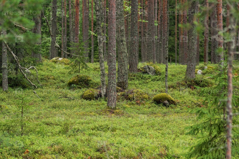 Природный ландшафт, сосновый бореальный лес с моховым подлеском, хвойная тайга