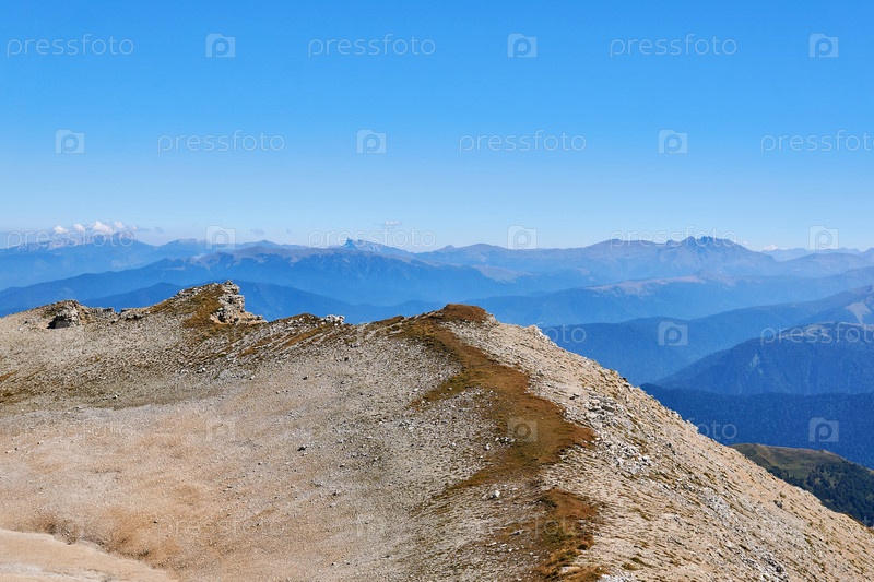Вершинный хребет с отвесными скалами горы Оштен на западном Кавказе