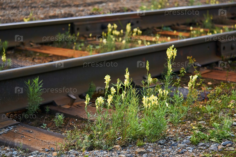 Между шпалами на железнодорожных путях росли дикие цветы льна-жабы