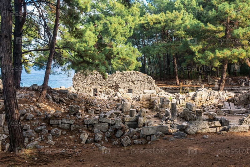 Вид на лесистые руины древнего города Фазелис