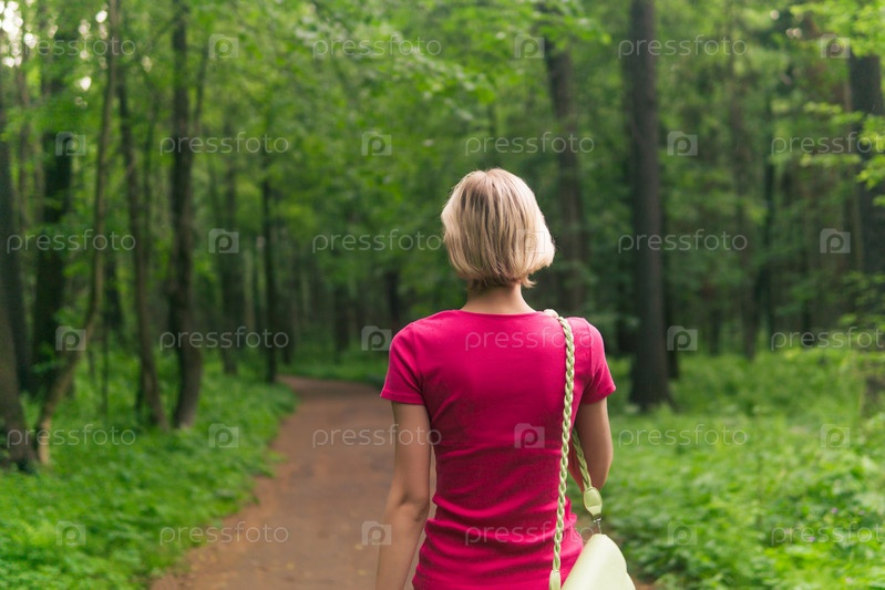 Молодая женщина гуляет одна по парку