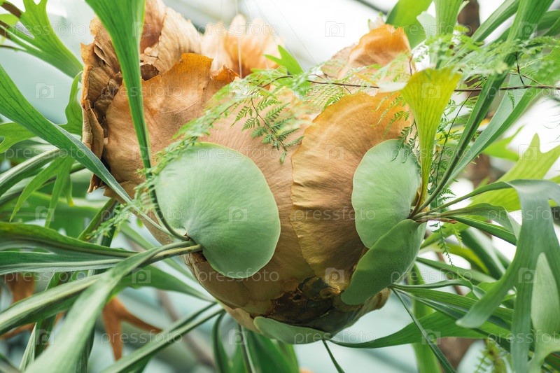 Базальные листья эпифитного папоротника platycerium в крупном плане