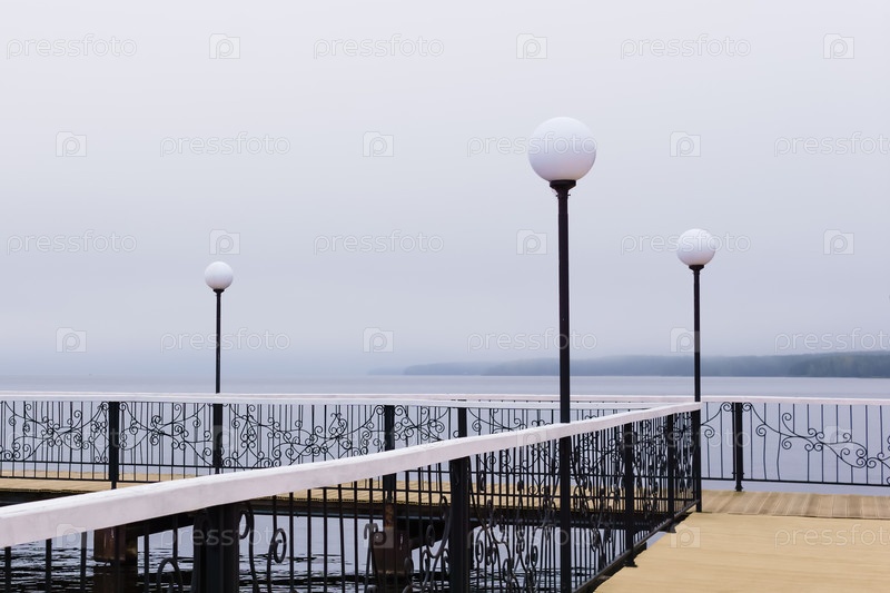 Туманный пирс с фонарями