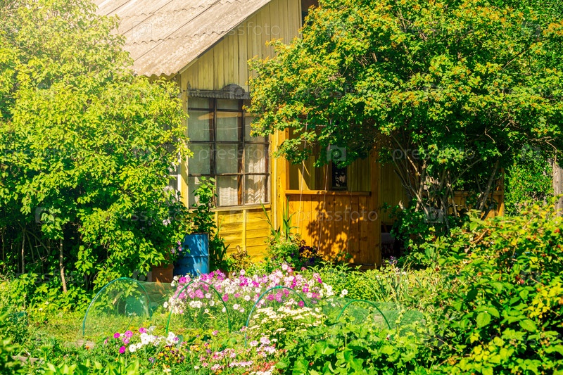 Деревенский дом с садом в солнечный летний день