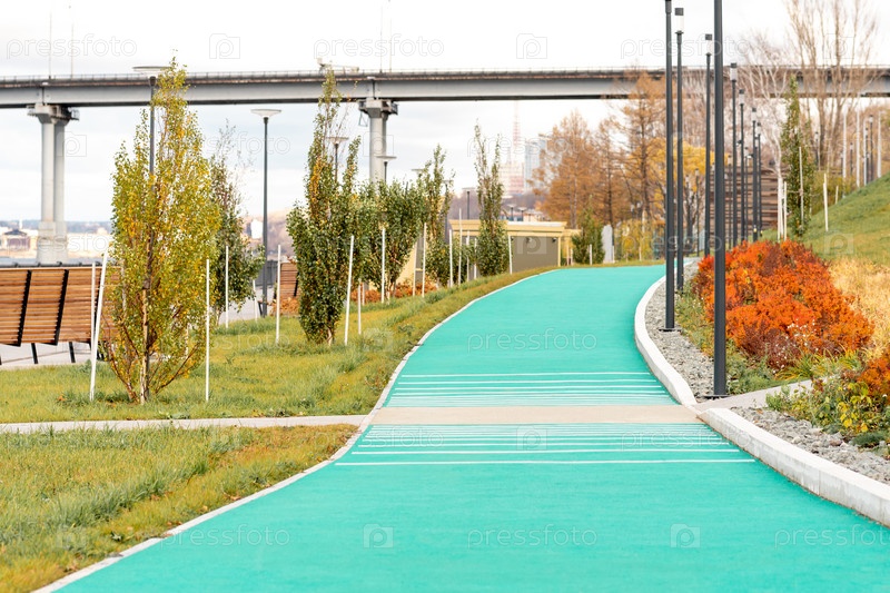 Беговая дорожка в спортивной зоне городского прибрежного парка