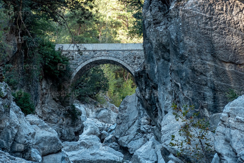 Древнеримский мост через тенистое ущелье в каньоне Кешме Богази, Турция