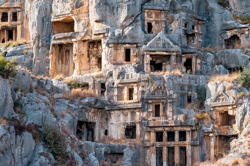 Древние гробницы и склепы, высеченные в скалах руин Миры
