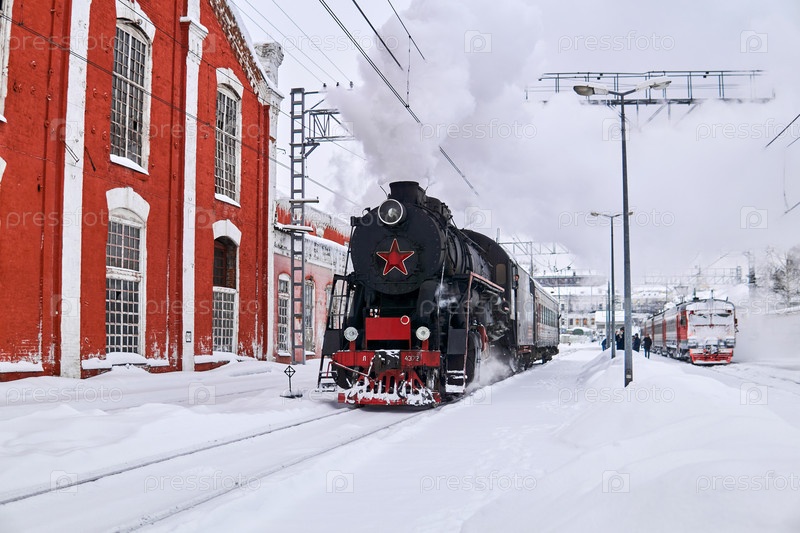 Паровоз, проходящий через станцию Пермь-1, Россия