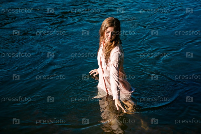 Молодая женщина купается в реке, наслаждаясь прохладной водой