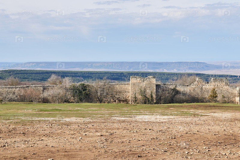 Руины средневековой крепостной башни Чуфут-Кале, Крым