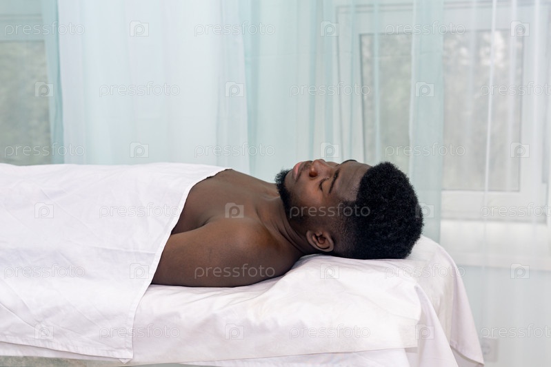 Чернокожий мужчина лежит на кровати в медицинском учреждении