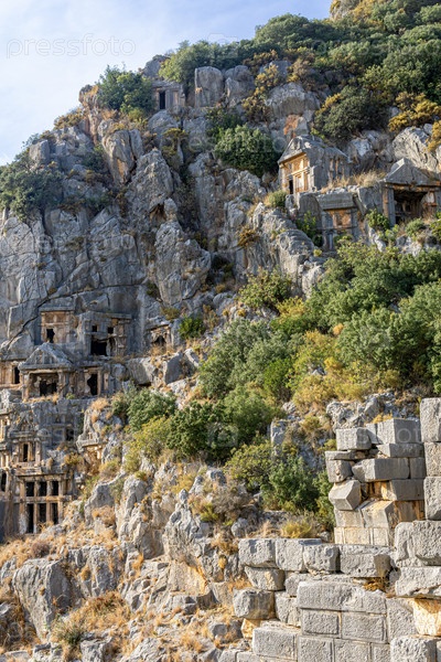 Античные каменные гробницы, высеченные на руинах Миры (Демре, Турция)