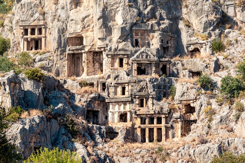 Античные каменные гробницы, высеченные на руинах Миры (Демре, Турция)