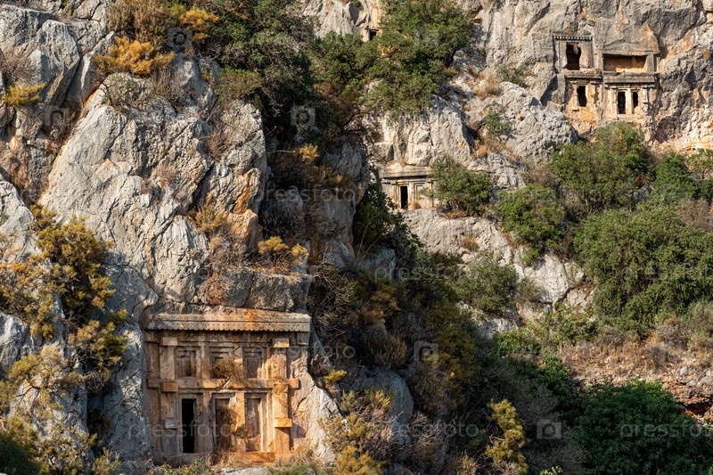 Античные каменные гробницы, высеченные на руинах Миры (Демре, Турция)