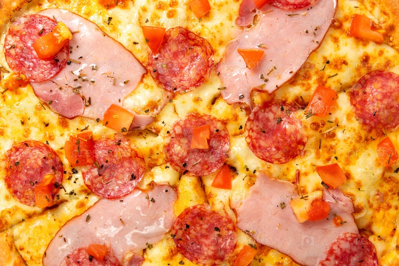 Фон с вкусной классической итальянской пиццей Пепперони с сосисками и сыром моцарелла