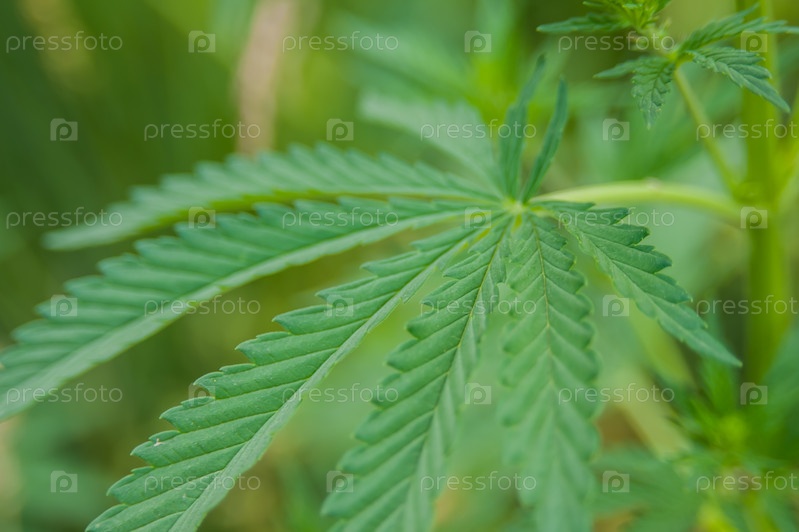 Листья конопли, растущие в дикой природе