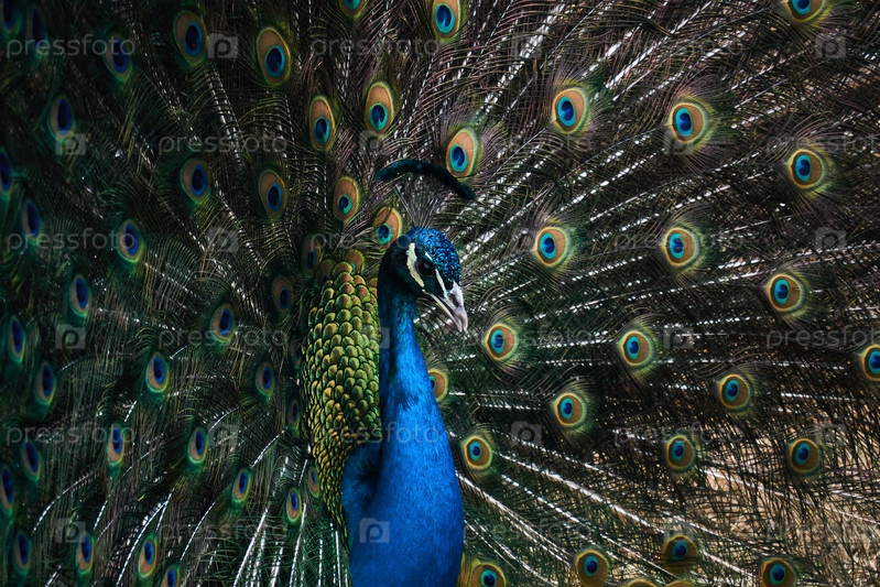 Портрет павлина на фоне собственного хвоста