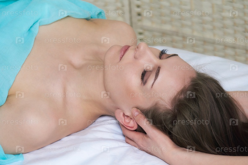 Красивая молодая женщина получает массаж лица в спа-салоне