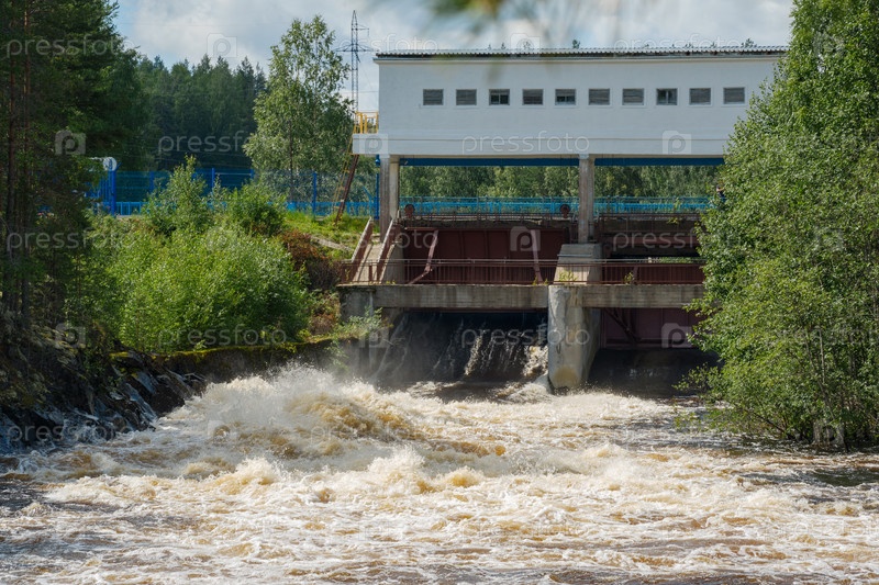 Открытые шлюзы для холостого сброса воды на малой ГЭС