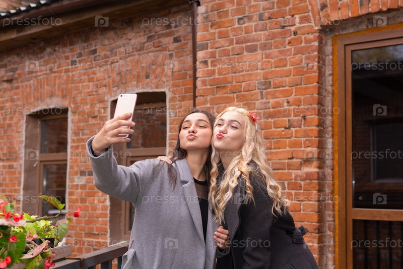 Две девушки делают селфи с утиным лицом