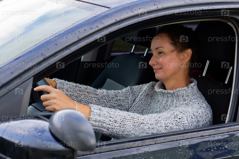 Улыбающаяся женщина за рулем автомобиля