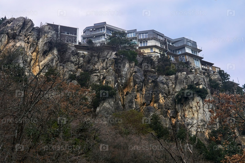 Современная архитектура – дома построены на скале и вписываются в ландшафт
